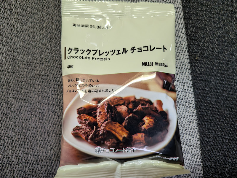 無印良品の定番です。こちらは割ったプレッツェルにチョコを浸み込ませたものです。