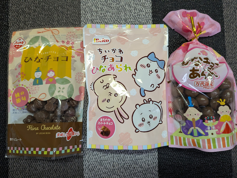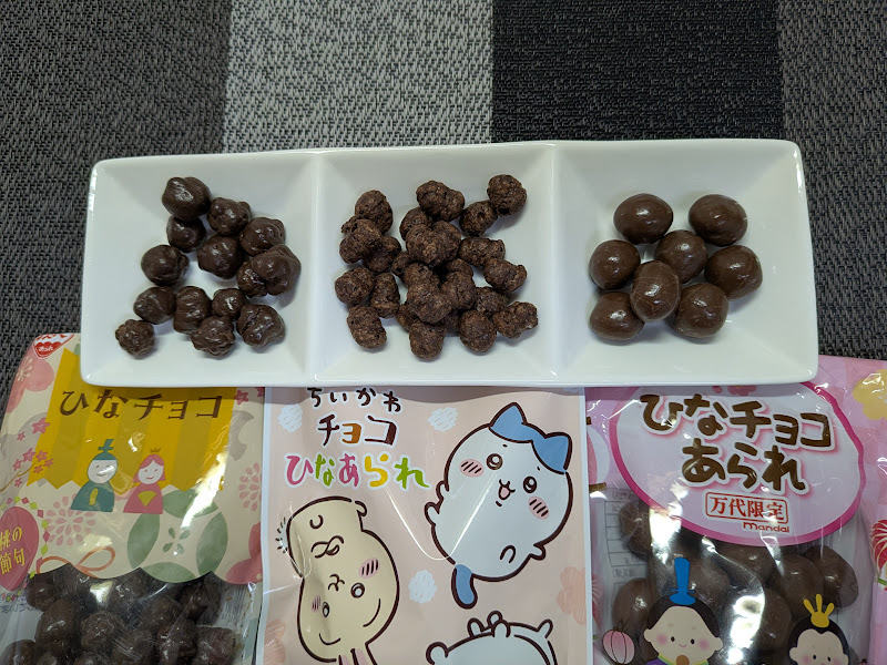 ちなみに、今回は2~3月で数十件のスーパーを回りました。関東方面でも確認しましたが、とよすのひなチョコはみかけませんでした。なお、今更ですが、私が関西出身なのでひなあられといえば、丸型のオカキが定番ですが、関西は色が付いたライスパフ?のようなものが多かったです。知りませんでした。関西のひなあられについては以下の記事をご覧ください。