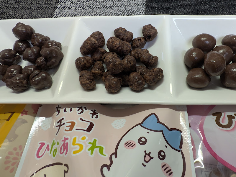 栗山米菓はばかうけや、星たべよ、などで有名な新潟のお菓子メーカーです。こちらも今年から見かける印象です。ちいかわと起用し、うるち米を使用し、まろやかなスイートチョコということです。